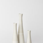 Tone Von Krogh current collection of contemporary domestic Ceramics is strongly influenced by her impressions and memories of the winter landscapes in Norway. When the snow covers trees, rocks, paths and architecture; any sharp edges become soft and everyday shapes may become unrecognisable. She has tried to bring the same feel to her work with a range of tactile, wavy vases and softly distorted beakers, bowls and bottles. The colour range is reflecting the many tones of snow and ice and winter skies.