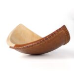 A sculptural curved form combining sycamore wood and leather. Each piece explores balance, tension and material contrast, creating a quiet architectural presence.