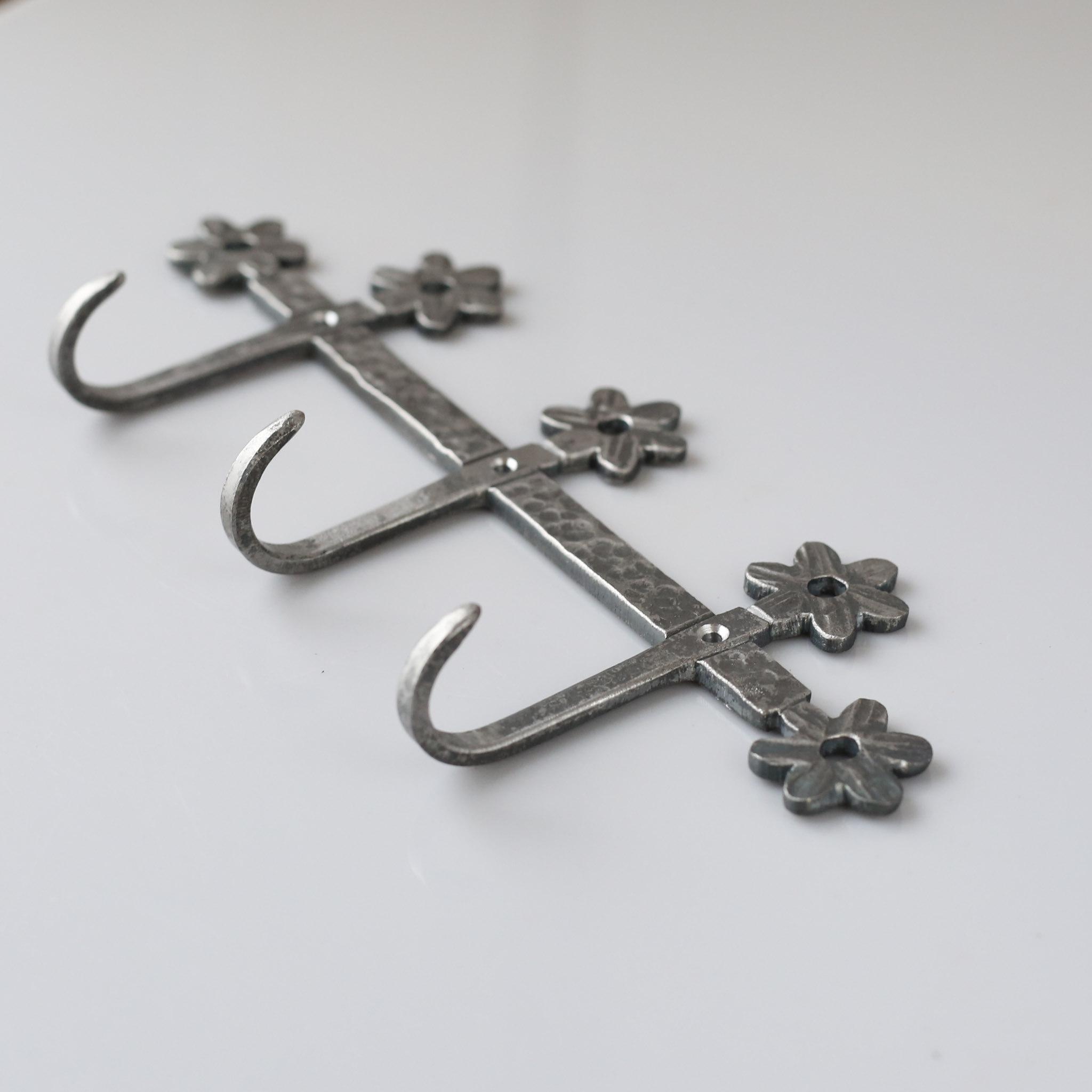 Hand-forged Iron Coat Rack with 3 hooks and a choice of 3 stylish designs.