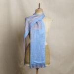 A handwoven silk lampas scarf inspired by the glow and movement of Buchanan Street at dusk. Woven in luminous blues, lilacs and soft green tones, it brings together structure, softness and shifting light.