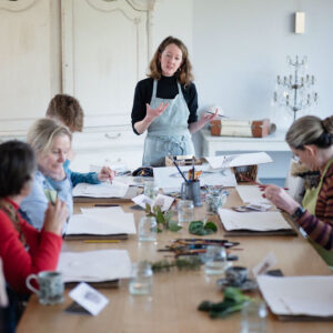 Raised in Oxford with a background in theatre design and performance, Fiona Chivers’ artistic journey has always been as varied and dynamic as her life. Now based in Cornwall, she creates immersive watercolours and ink works inspired by the breathtaking coastline and its botanical wonders. Her collections often explore themes of ocean life, plants, and swimming figures, blending storytelling with the natural beauty of her surroundings.